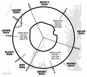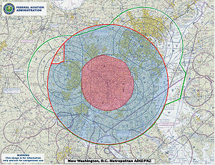 An AIR DEFENSE IDENTIFICATION ZONE (ADIZ) has existed since February 10, 2003 around the Baltimore-Washington Metropolitan Area to restrict air traffic near Washington, D.C.