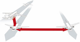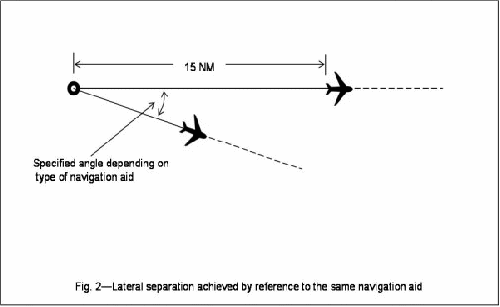 In other case of beacons to be separated, the aircraft must be a certain distance from the beacon (measured by time or by DME) and their tracks to or from the beacon must diverge by a minimum angle.
