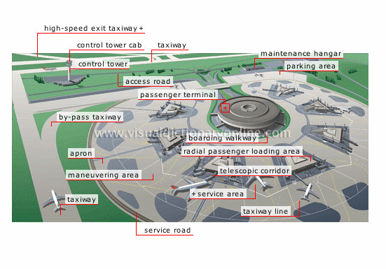 Airplane – A powered aircraft that derives its lift from the movement of air over fixed lifting surfaces.