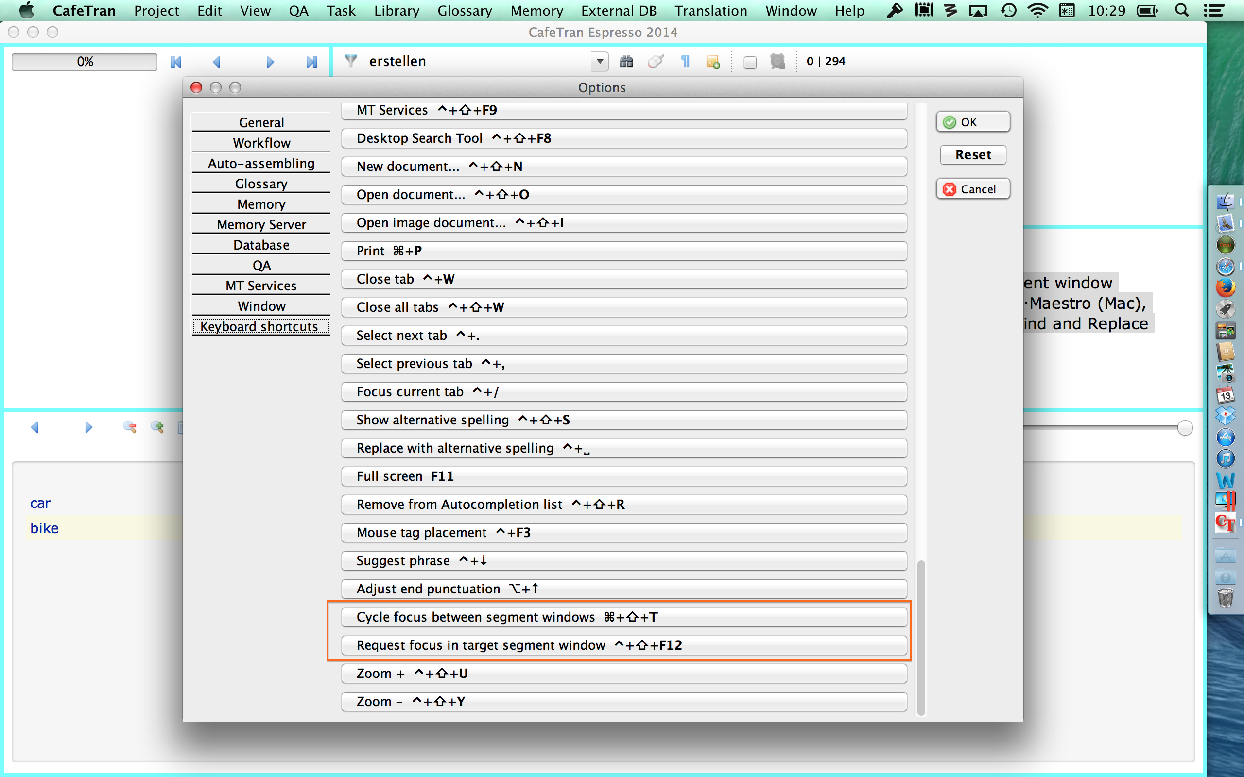 - 2014-07-12 New keyboard shortcut: Window > Segment windows > Request focus in target segment window CTRL+SHIFT+F12, important for automation with AutoHotkey (Windows) or Keyboard Maestro (Mac), works in the translation editor, the Add term dialogue, Quick Term Editor and in the Find and Replace dialogue.