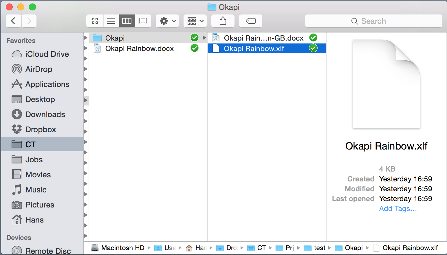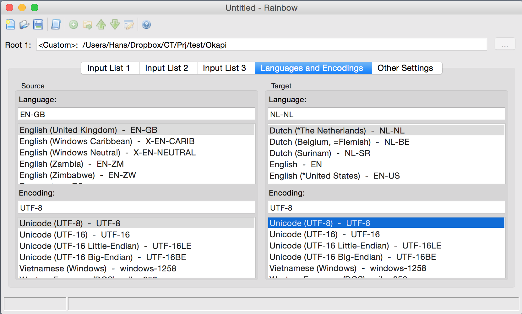 First you need to download Okapi Rainbow. Like CafeTran this is a Java app. If you are running CafeTran on Window, you can download the latest version of Rainbow. However, if you are running CafeTran on OS X, you are restricted to Java 6 and you should download version 23 of Okapi Rainbow: