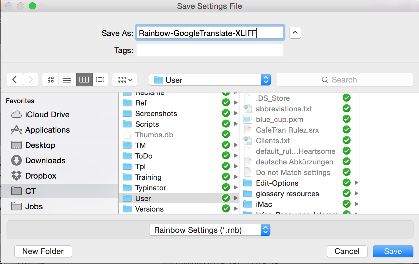 Translating the XLIFF file in Rainbow