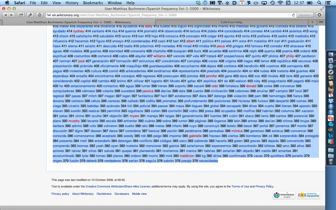 - Download a list of the most frequent words for your source language, e.g. the 5000 most frequent Spanish words: http://en.wiktionary.org/wiki/User:Matthias_Buchmeier/Spanish_frequency_list-1-5000