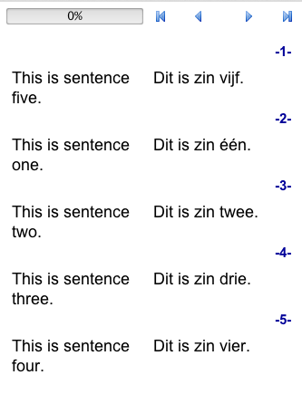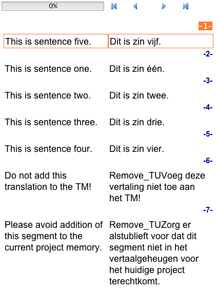 Here is a TM ‘Test.TMX’, opened in TMX edit mode, that contains five segments:
