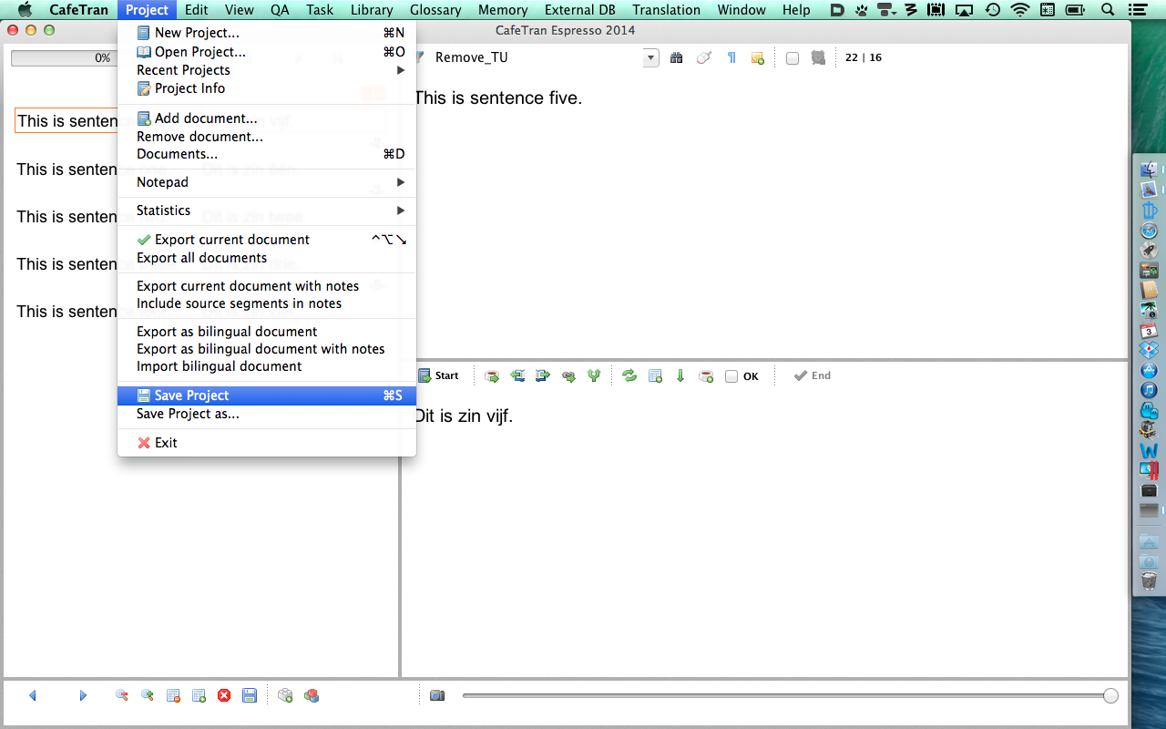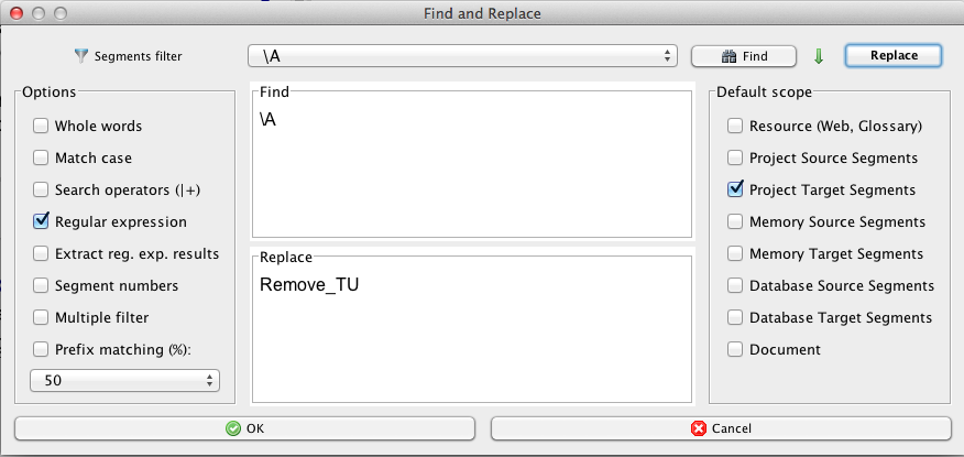 - Remove the filtered TUs from the TM ‘Test.TMX’ (loaded as a project!):