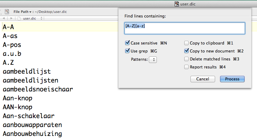 Both CafeTran's user.dic and Word's custom dictionary are case-sensitive, which can be both an advantage (e.g. for German) and a disadvantage (e.g. for Dutch).