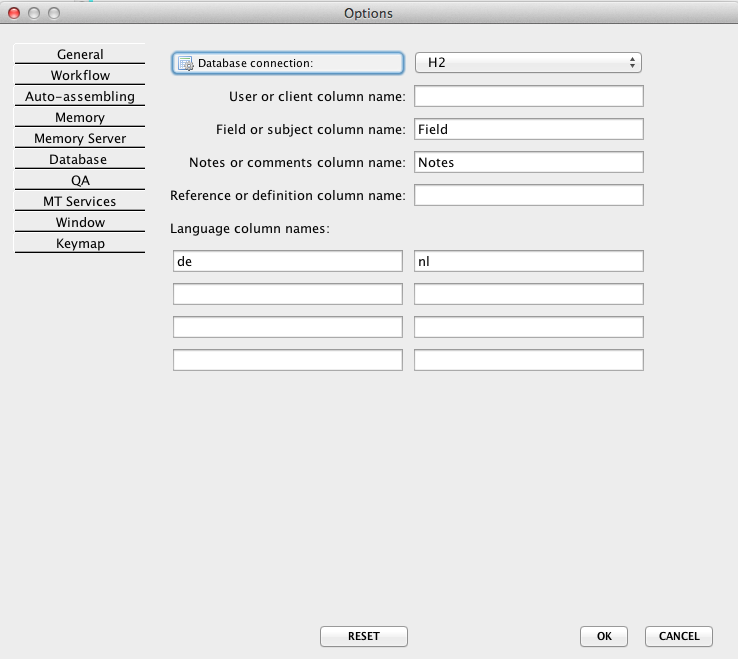 - If it is needed, define the column for notes or comments. If this column is defined here, CafeTran will create it when setting a new database table for segments or terms.