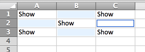 - Press the Control or Command key and click in the cells/ranges that you want to hide: