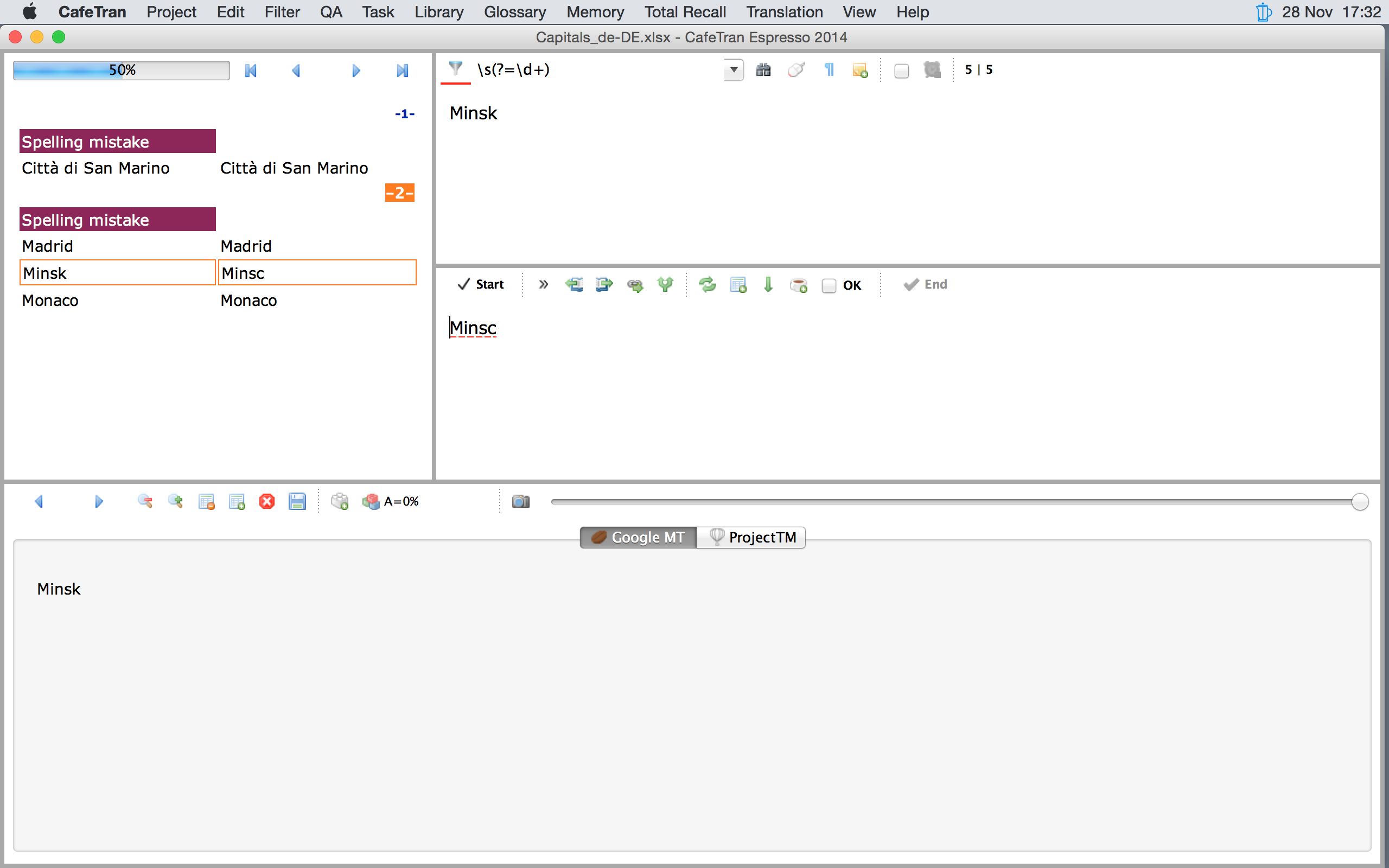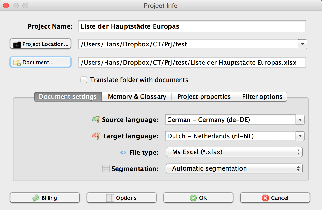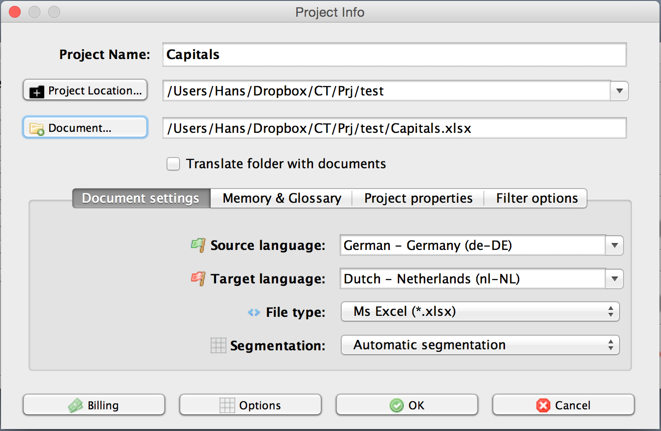 When you have to translate a column of an Excel file into another column that already contains some translations, it can be very handy to load both columns (containing source and target language) into the grid. You can then filter on empty target segments and after you have added the missing translations, you can run QA checks on all target cells.