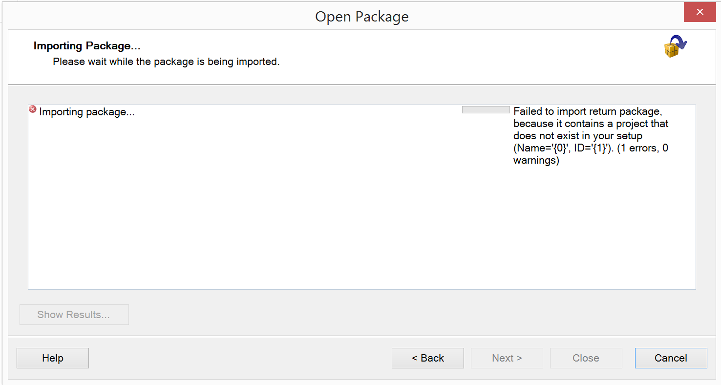 If the originating project is present in Studio, opening the SDLPPX package created by CafeTran results in this message: