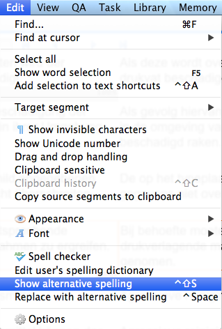 - Press the keyboard shortcut assigned to Show alternative spelling to open the context menu: