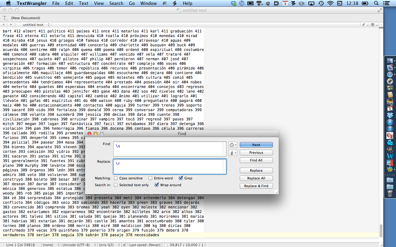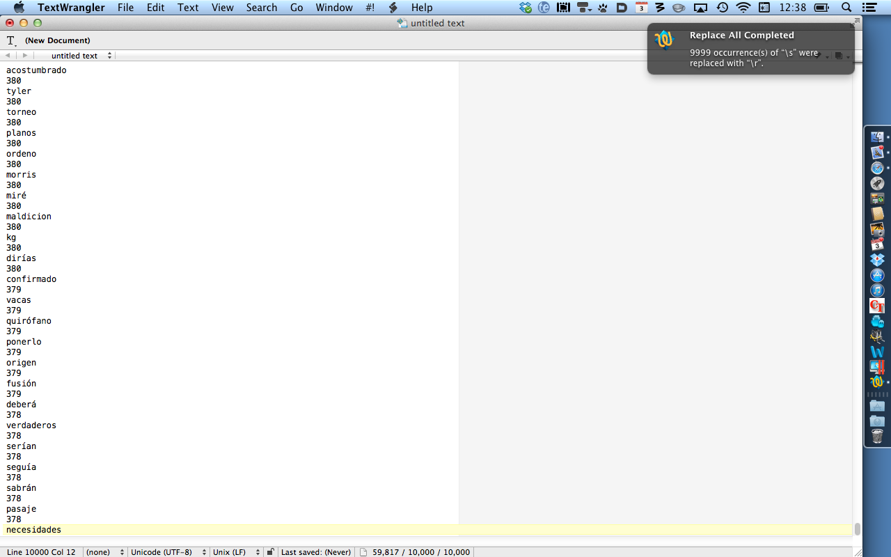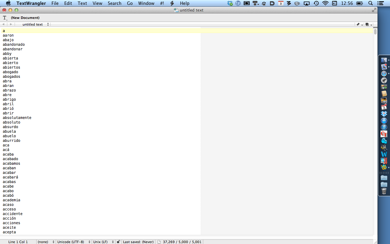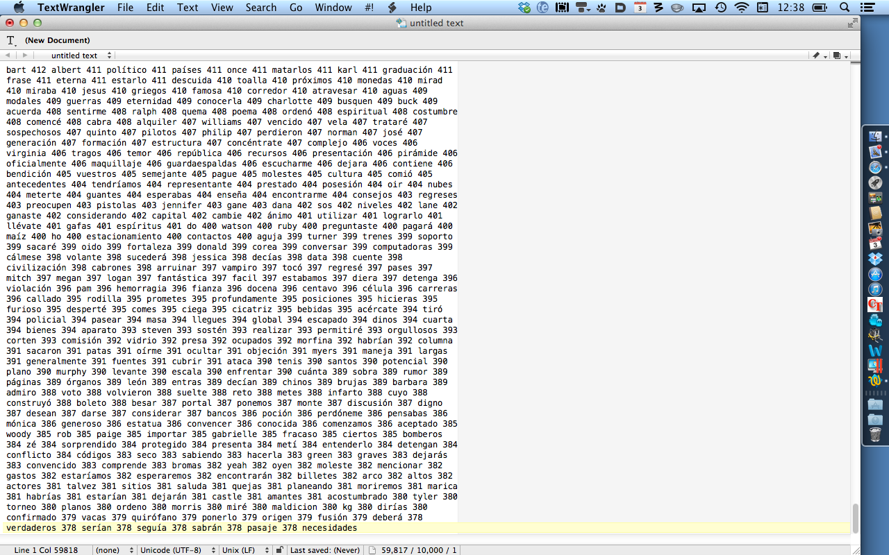 - Copy the 5000 frequent words to an empty document in a text editor: