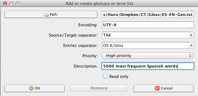 See here how to create a glossary resource definition so that you can load the glossary in CafeTran. The result will be like this: