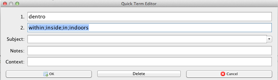 TIP: In the tabbed pane, you can double-click on a source term to open the Quick Term Editor, in order to make corrections or additions to a term pair:
