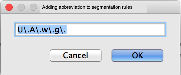 Now select the unknown abbreviation: ‘U.A.w.g.’ and from the Tools menu select Add abbreviation. A dialogue box is displayed:
