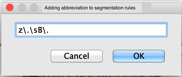 Whenever you encounter a segment that has been split too early, namely after an ‘unknown’ abbreviation (that is: an abbreviation that isn't present in the SRX file for your source language), you click Join one or several times, until the segmentation is correct: