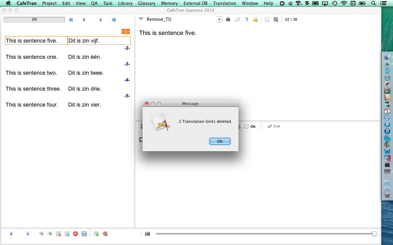 - Remove the filtered TUs from the TM ‘Test.TMX’ (loaded as a project!):