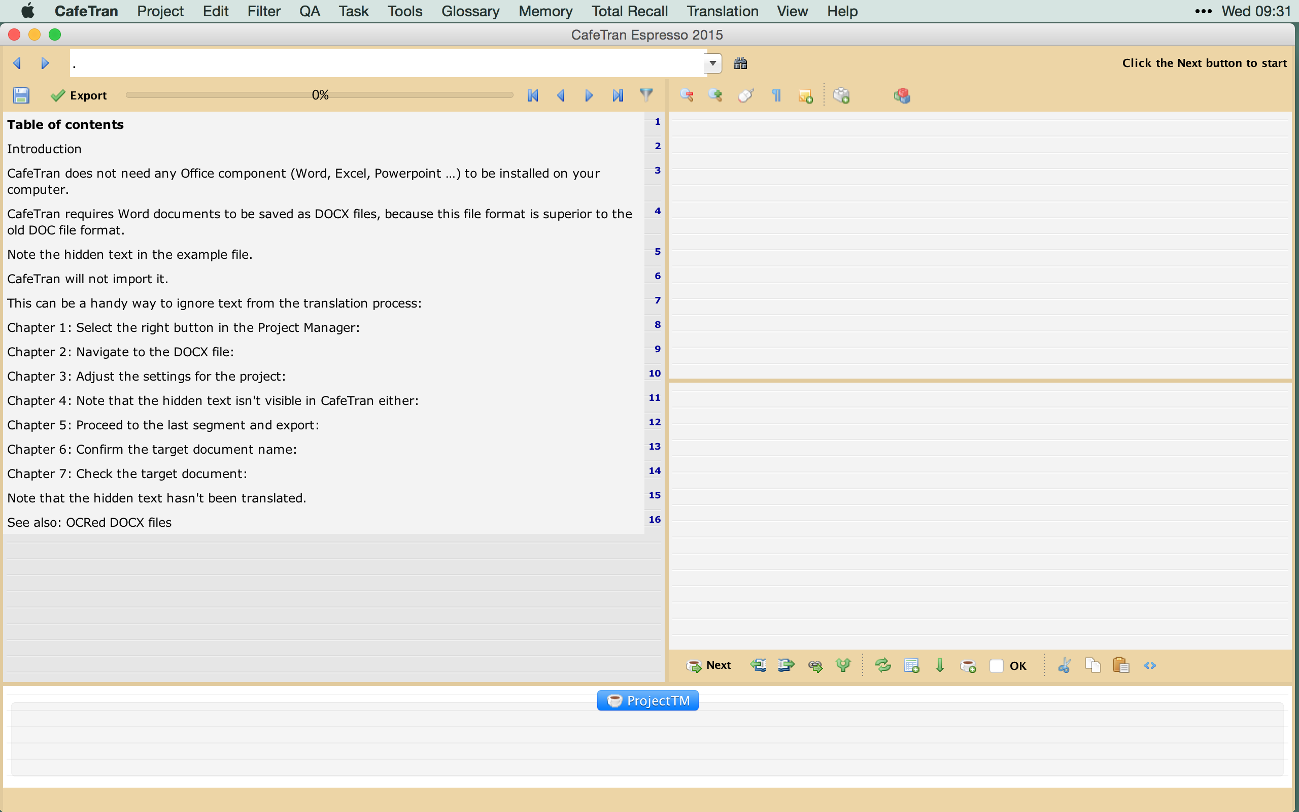 If you don't want to translate the table of contents of a Word document, you will have to prepare your Word document before you import it in CafeTran.