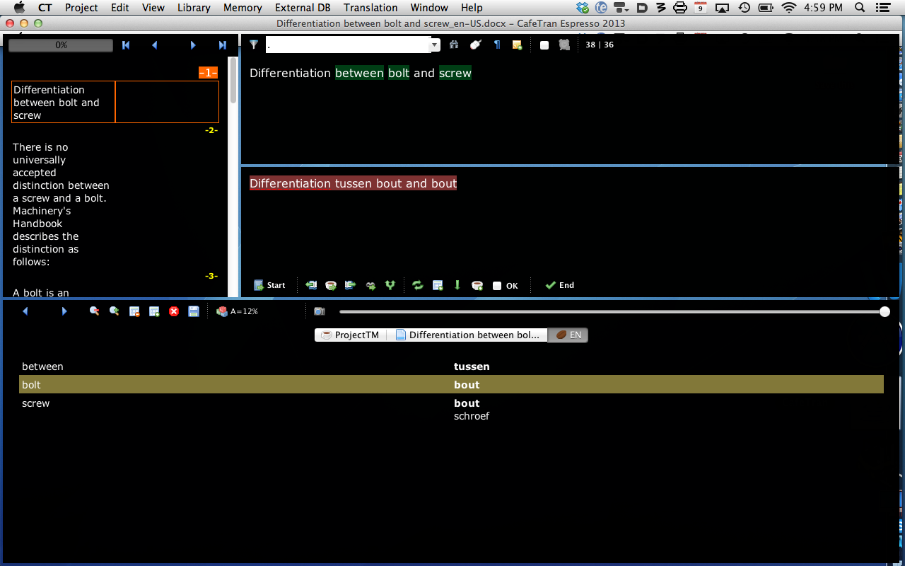 Note: If you don't want to use an external editor, you can simply add your preferred target term to the glossary, it will overrule any existing target terms and thus be used in the rest of your project.