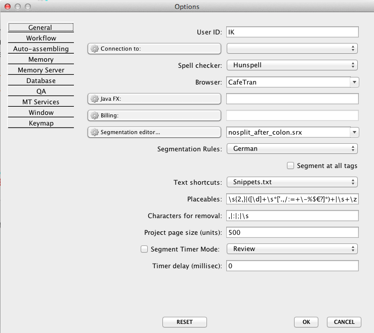 - Specify how long each segment is displayed in the CafeTran editor when the Segment Timer function is activated.