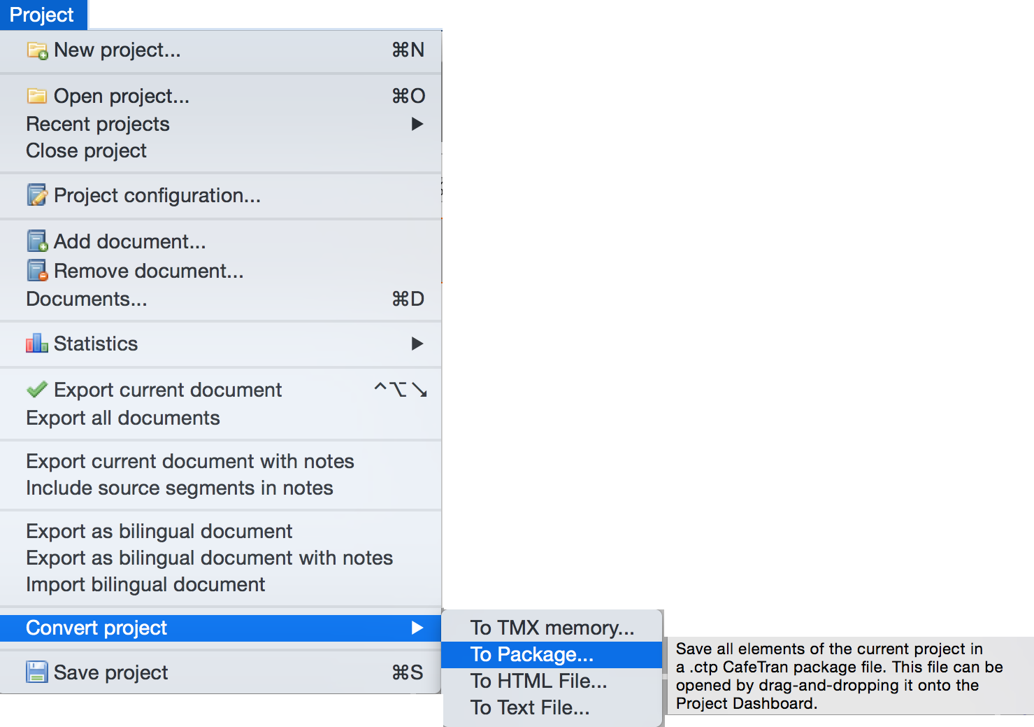 PLEASE NOTE: In Studio, in order to open an SDLPPX package created by CafeTran, the originating project has to be present.