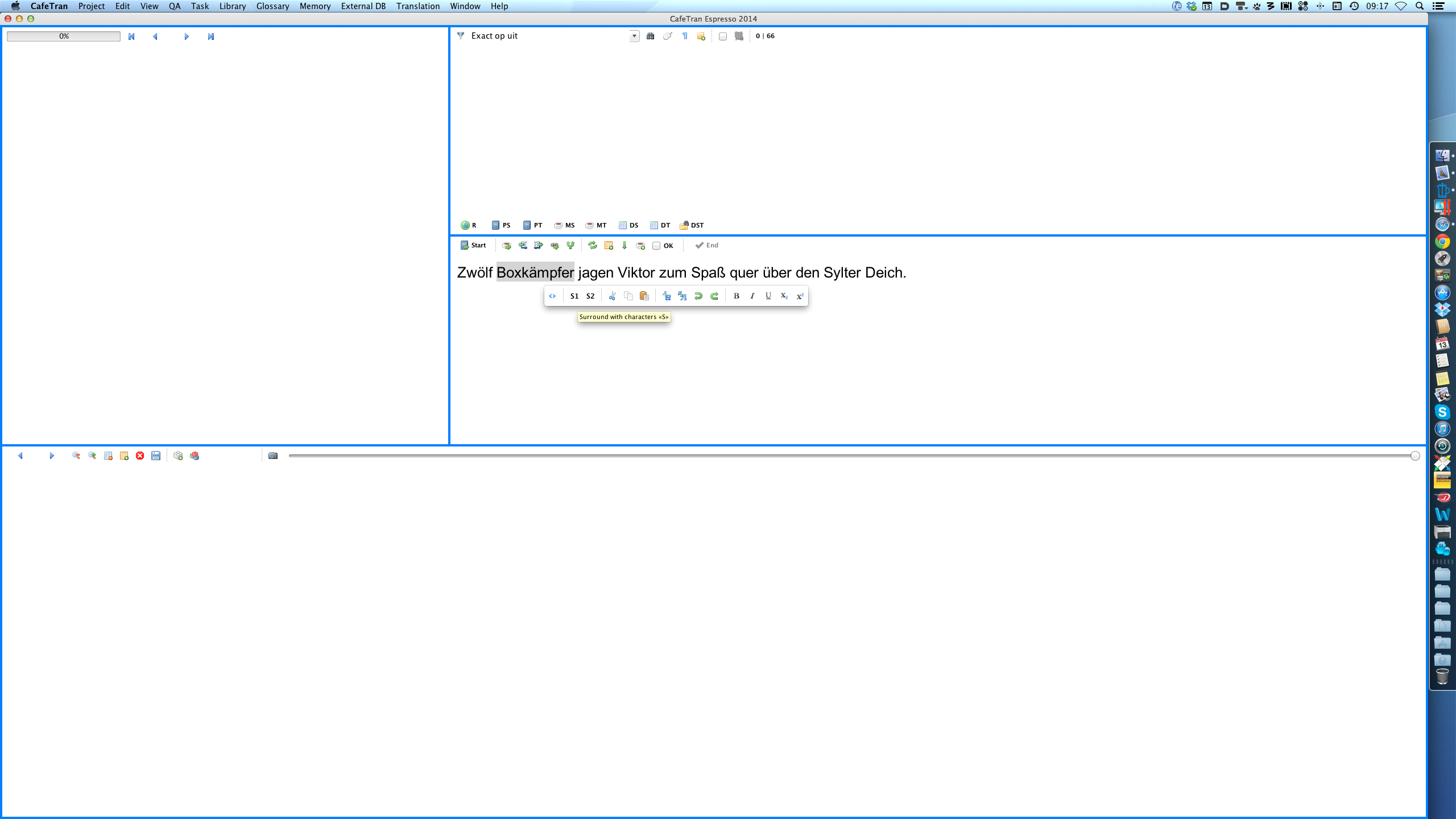 PLEASE NOTE: In OS X apps you can call the service via the right mouse button. In CafeTran you have to use the keyboard shortcut.